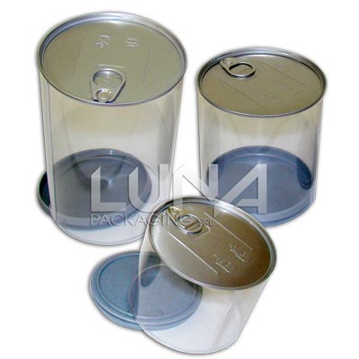 Serie di astucci cilindrici realizzati in PVC trasparente. In questo caso neutri per dar modo di coglierne tutti i particolari, si possono personalizzare a 360° sino a 4 colori. La particolarità che contraddistingue questo articolo è il coperchio Easy Open, cioè a strappo come nelle lattine realizzato in latta sottile color argento aggraffato al corpo della scatola.