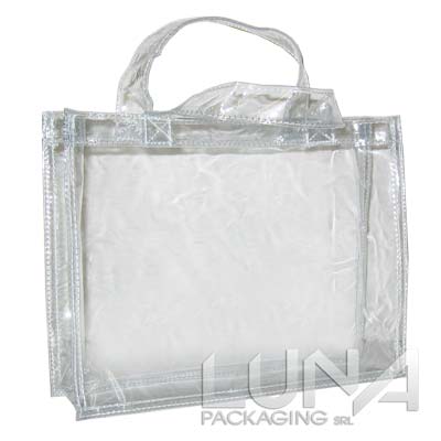 Shopper in PVC semimorbido alto spessore - neutra con manici - completamente cucita su tutti i lati - possibili anche forniture quantità medie.